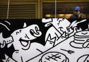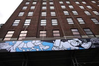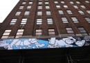 Lunedì un murale in vinile lungo 140 metri e alto uno è stato affisso sulle impalcature della sede di Google a New York, nel quartiere di Chelsea. Il murale è stato disegnato in una settimana dai designer Mark Miller e Dave Franzese dello studio grafico Dark Igloo e raffigura personaggi legati al passato di Chelsea: dal maggiore Thomas Clark, che nel Settecento diede nome al quartiere, allo scrittore Jack Kerouac che negli anni Cinquanta scrisse il romanzo autobiografico Sulla Strada nel Chelsea Hotel.