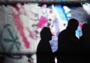 Baci alla bandiera leghista e tra Bossi e Maroni, mani sul cuore durante l'inno e scope dipinte di verde per chiedere pulizia nel partito