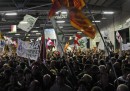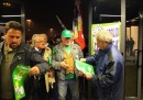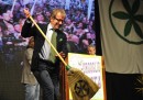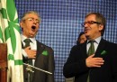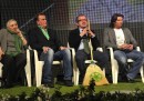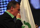Martedì sera, 10 aprile, si è svolto a Bergamo il raduno dell’orgoglio leghista, organizzato per rilanciare l’immagine della Lega e riunire i militanti dopo lo scandalo sulla presunta gestione illecita dei rimborsi elettorali del partito. Sul palco erano presenti Roberto Maroni, Manuela Dal Lago e Roberto Calderoli – che dopo le dimissioni di Umberto Bossi hanno il compito di guidare il partito in attesa il congresso federale – l’ex leader della Lega Nord e il segretario provinciale a Bergamo Cristian Invernizzi. Nel suo intervento, Maroni ha garantito l’estraneità dal caso di Bossi, che a sua volta ha parlato di complotto per rovinare la Lega ma ha anche chiesto scusa per il comportamento del figlio Renzo – che ieri si era dimesso – e ha promesso che otterrà le dimissioni di Rosy Mauro e Francesco Belsito. Sotto il palco decine di militanti vestiti come al solito di verde reggevano scope con il simbolo della Padania e cartelloni che chiedevano la pulizia nel partito.