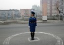 Gli operai nelle fabbriche, i musei celebrativi del regime e la vita grigia dei suoi abitanti, a pochi giorni dall'annunciato lancio di un satellite