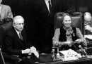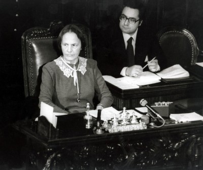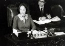 Nilde Iotti era nata a Reggio Emilia il 10 aprile del 1920. Entrò nel Partito Comunista Italiano nel 1943 e in Parlamento nel 1946, diventando membro dell’Assemblea Costituente. Fu compagna di Palmiro Togliatti, segretario del PCI, fino alla sua morte, in una relazione che – Togliatti era sposato con figli – fu molto ostacolata anche dentro il loro partito. Nel 1979 viene eletta presidente della Camera dei deputati e lo resta per tre legislature, fino al 1992. Nel 1987 ebbe un incarico esplorativo di formazione del governo, che non ottenne risultato: sarebbe stata l’unica donna capo del governo della storia italiana.
