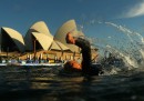 C’è molta acqua, in sintonia con il tempo atmosferico, nelle migliori foto sportive di questa settimana: la copertina la guadagna un’immagine di una gara di triathlon a Sydney, con il celebre teatro dell’opera di Sydney sullo sfondo, ma c’è anche una gara di canoa discesa, le World Series di vela che si stanno tenendo a Napoli e una spettacolare foto dal festival del surf in Nuova Zelanda. E poi il rugby, un torneo di golf, una ginnasta e una foto di scherma molto teatrale.