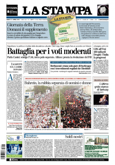 Le prime pagine di sabato 21 aprile 2012