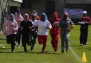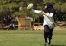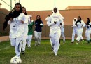Foto: Atlete della squadra di calcio Jeddah Kings United si allenano a Jeddah, in Arabia Saudita, nel maggio 2009: si allenano e si sfidano tre volte alla settimana in una specie di campo da calcio circondato da alte mura. Quello che fanno è illegale (Omar Salem/AFP/Getty Images)