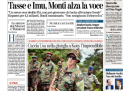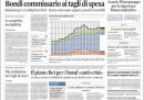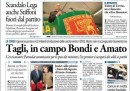 La decisione del governo Monti di nominare Enrico Bondi commissario per la razionalizzazione della spesa è la notizia di apertura su tutti i giornali di oggi: per Libero e il Giornale la nomina è una presa in giro, la Stampa sottolinea invece le parole di Monti in conferenza stampa, con le critiche al governo Berlusconi per l’abolizione dell’ICI e al PDL per aver incitato all’evasione fiscale, mentre per il Secolo d’Italia sta nascendo “un nuovo carrozzone”. La festa del primo maggio è celebrata in prima pagina dal Manifesto, per il quale comunque “non sarà una festa” per la crisi economica, e dall’Unità, con un disegno di Staino e un’intervista a Susanna Camusso, mentre la Padania titola sulla protesta fiscale dei sindaci (per la maggior parte leghisti) contro l’IMU.