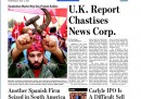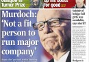 Sulle prime pagine dei giornali di oggi in Regno Unito trovano molto spazio i contenuti della pesantissima relazione parlamentare su Rupert Murdoch, che lo giudica “inadatto a guidare una grande azienda internazionale”.