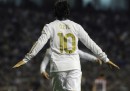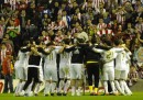 Il Real Madrid ha vinto la Liga, il massimo campionato di calcio spagnolo, con due giornate di anticipo. La certezza matematica è arrivata dopo la vittoria ottenuta ieri per 3-0 contro l’Athletic Bilbao, grazie ai gol di Higuain, Ozil e Cristiano Ronaldo. Per il Real Madrid è il 32esimo campionato vinto nella sua storia. Per José Mourinho è il quarto campionato ottenuto in quattro paesi diversi, tra cui i tre maggiori europei – col Porto in Portogallo, col Chelsea in Inghilterra (due volte), con l’Inter in Italia (due volte), con il Real Madrid in Spagna – e la cosa non era riuscita fin qui a nessun allenatore. Negli ultimi tre anni il campionato era stato vinto dal Barcellona. Se il Real Madrid vincesse le ultime due partite del campionato raggiungerebbe 100 punti, eguagliando il record del Barcellona nella stagione 2009/2010. Cristiano Ronaldo è ancora in lotta per il titolo di capocannoniere: ha segnato 44 gol in 36 partite, deve raggiungere Messi che ne ha fatti 46 in 35 partite.
