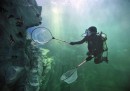 Nelle più belle foto di oggi ci sono manutentori di acquari, distese di sacchi di grano e tamburi giganti