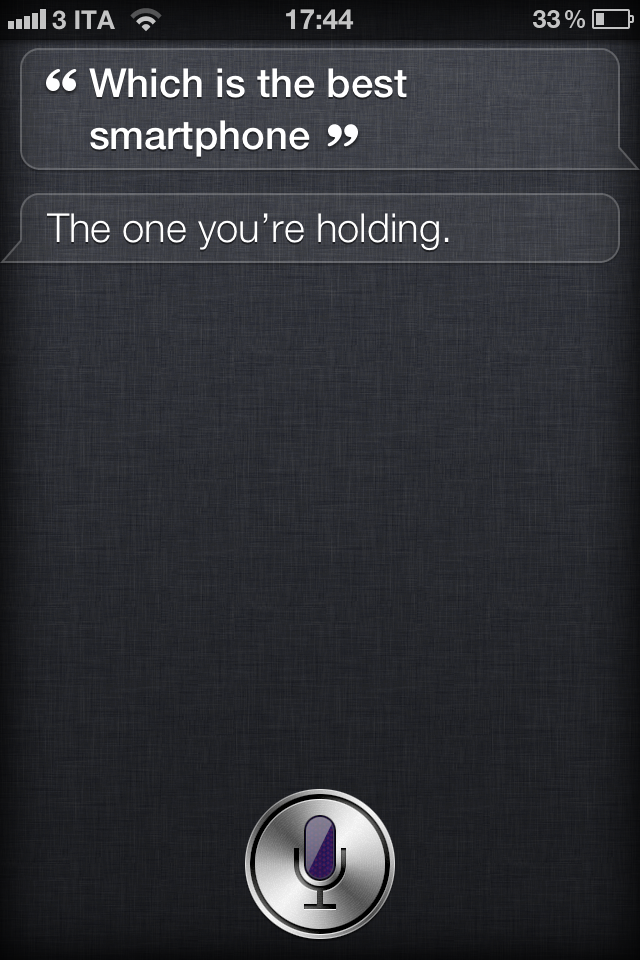 È comunque sufficiente cambiare di poco la domanda per ottenere da Siri una risposta più aziendalista, diciamo.