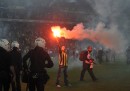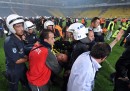 Ieri sera allo stadio Sukru Saracoglu di Istanbul ci sono stati violenti scontri tra i tifosi del Fenerbahçe e la polizia. Gli scontri sono cominciati subito dopo la fine della partita tra il Fenerbahçe e il Galatasaray, finita 0 a 0, che è stata decisiva per assegnare la vittoria della Süper Lig (il campionato turco) al Galatasaray. Anche durante i 90 minuti di gioco la partita era stata molto tesa, con parecchie ammonizioni e un’espulsione per parte.