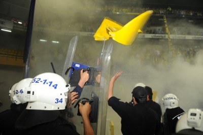Alla fine della partita i tifosi del Fenerbahçe hanno divelto i sedili di plastica dello stadio e li hanno scagliati in campo contro i giocatori avversari. La polizia è subito intervenuta e ha cercato di proteggere i giocatori con gli scudi, lanciando lacrimogeni e fumogeni contro i tifosi. I disordini sono proseguiti anche fuori dalla stadio, dove i tifosi del Fenerbahçe hanno rotto vetrine, ribaltato cassonetti della spazzatura e addirittura ribaltato e dato fuoco a due macchine della polizia nel quartiere di Kadikoy. A quanto risulta fino a ora, non ci sarebbero stati feriti gravi.