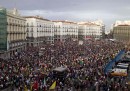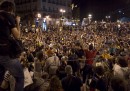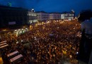 Ieri a Madrid, in Spagna, almeno 30mila persone sono tornate a manifestare a Puerta del Sol, a un anno esatto dall’inizio dell’occupazione della piazza per protesta contro la politica spagnola, l’altissima disoccupazione giovanile nel paese (oggi al 50 per cento) e la gestione della crisi economica. Gli organizzatori della manifestazione hanno voluto così dimostrare che il movimento 15-M (ossia 15 maggio, anche se l’anno scorso le prime manifestazioni cominciarono il 12) è ancora vivo. Dopo molte settimane di protesta e occupazione della piazza, Puerta del Sol era stata definitivamente sgomberata lo scorso agosto.