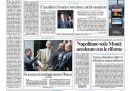 I quotidiani oggi aprono con notizie piuttosto varie. Il Corriere della Sera si concentra sulla “spinta per le riforme” che lancia la seconda fase del governo Monti, che ha l’obiettivo della crescita e un rinnovo delle istituzioni. Repubblica, invece, dà molto spazio all’annuncio del ministro degli Interni Cancellieri di ieri, che non ha escluso l’utilizzo dell’esercito per combattere la recente minaccia del terrorismo in Italia. La Stampa, invece, ha una copertina che ricorda, venti anni dopo, i giudici Giovanni Falcone e Paolo Borsellino, uccisi dalla mafia nel 1992. Il manifesto titola “Gli intignati” per ricordare il ritorno in strada dei manifestanti Occupy, “indignados” e anticapitalisti, un anno dopo le prime proteste, mentre Libero se la prende con i “banchieri esentasse”. E oggi si gioca l’ultima giornata del campionato di serie A, come ci ricordano i giornali sportivi.