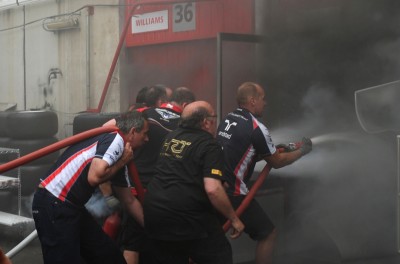 Le foto dell’incendio al box Williams dopo il Gran Premio di Spagna