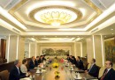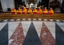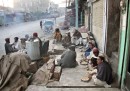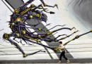 Nelle più belle foto di ieri ci sono operai che fanno colazione in un chiosco, che camminano in alto sulle impalcature e che appendono un poster gigante di Marilyn Monroe