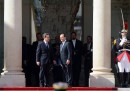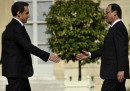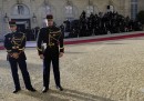 Francois Hollande è ufficialmente il nuovo presidente della Francia. Hollande si è insediato durante una cerimonia all’Eliseo, il palazzo presidenziale nel centro di Parigi. Hollande nominerà adesso il suo primo ministro e volerà immediatamente in Germania, per il primo colloquio ufficiale col cancelliere Angela Merkel. Hollande è arrivato all’Eliseo insieme a sua moglie, Valérie Trierwiler, ed è stato accolto da Nicolas Sarkozy e Carla Bruni. Hollande ha incontrato Sarkozy, che gli ha consegnato i codici per le armi nucleari, e terrà il suo primo incontro con un gruppo di ex primi ministri socialisti, Pierre Mauroy, Laurent Fabius, Michel Rocard, Edith Cresson e Lionel Jospin. Hollande è il primo presidente francese socialista in 17 anni. Al termine della cerimonia Hollande lascerà l’Eliseo e percorrerà (su auto ibrida) gli Champs-Élysées nella tradizionale parata presidenziale. Con ogni probabilità il suo primo ministro sarà Jean-Marc Ayrault, capogruppo dei socialisti in Parlamento, mentre Michel Sapin dovrebbe diventare ministro delle Finanze. Giovedì Hollande terrà la prima riunione col suo governo, venerdì volera a Washington per incontrare Barack Obama.
