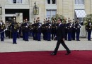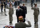 Le foto della cerimonia a Parigi, sorrisi e strette di mano con Sarkozy e Carla Bruni, prima di volare da Angela Merkel