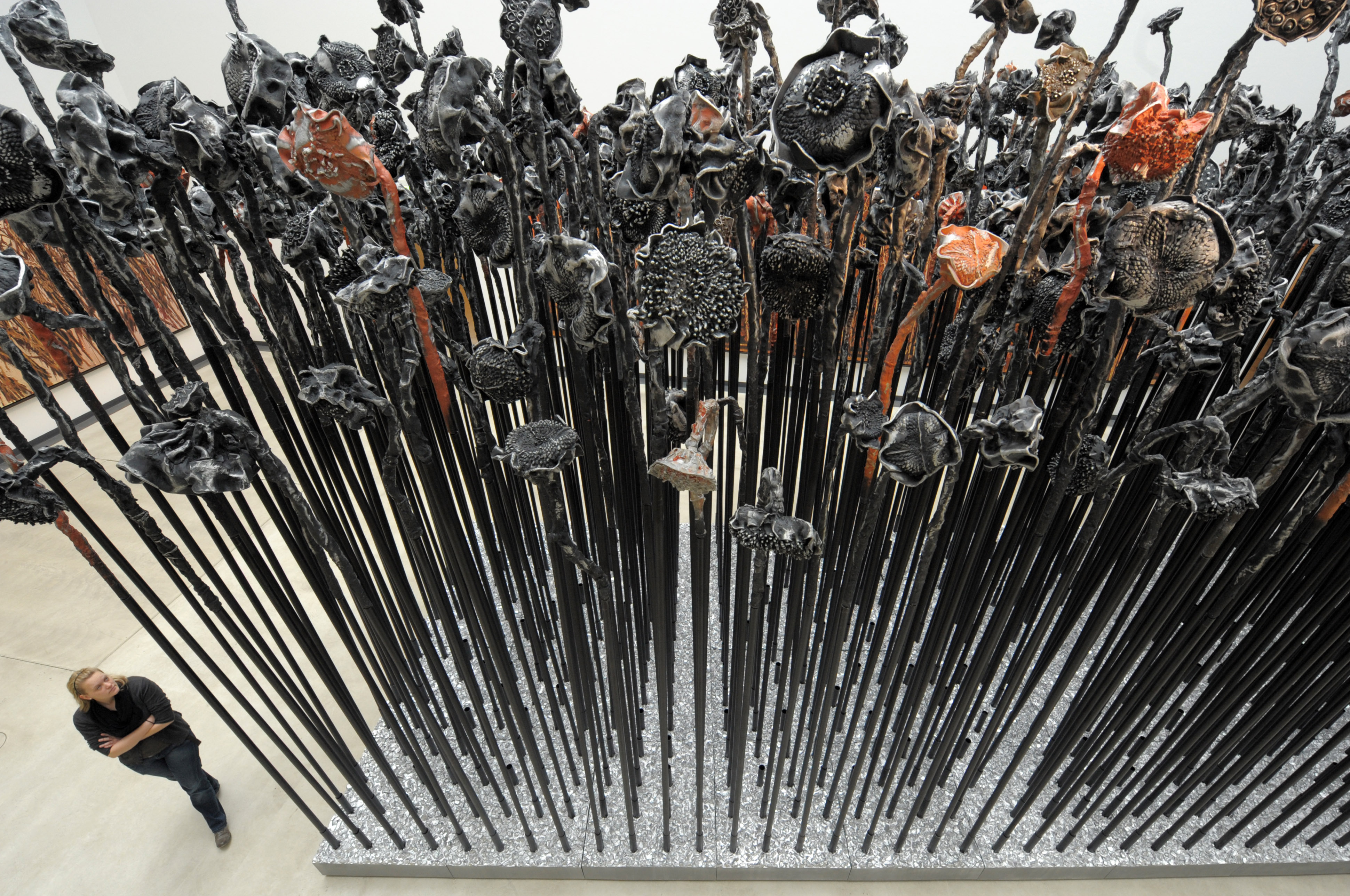 Xu Jiang è un artista cinese nato nella provincia di Fujian nel 1955, è il presidente dell’Accademia di Belle Arti di Hangzhou e ha fatto parte del comitato della Biennale di Shanghai. Dal 2003, al centro del suo lavoro, ci sono i girasoli: quelli che l’artista vede nella campagna della provincia di Fujian dove insegna in una scuola media. Xu Jiang ha spiegato che i girasoli non stanno «di fronte al sole» ma si rivolgono a «una direzione»: quella del sole che sorge.