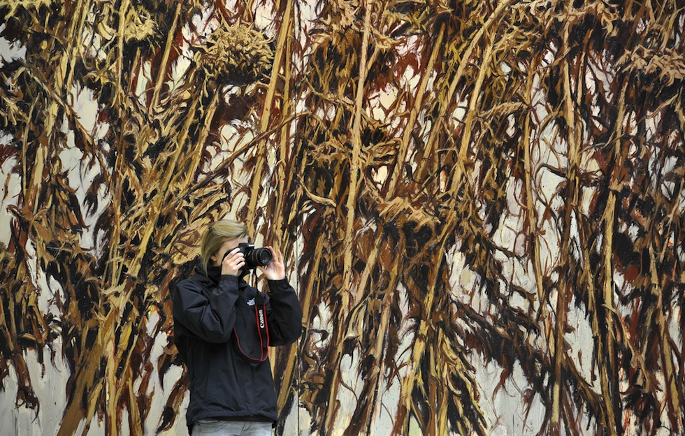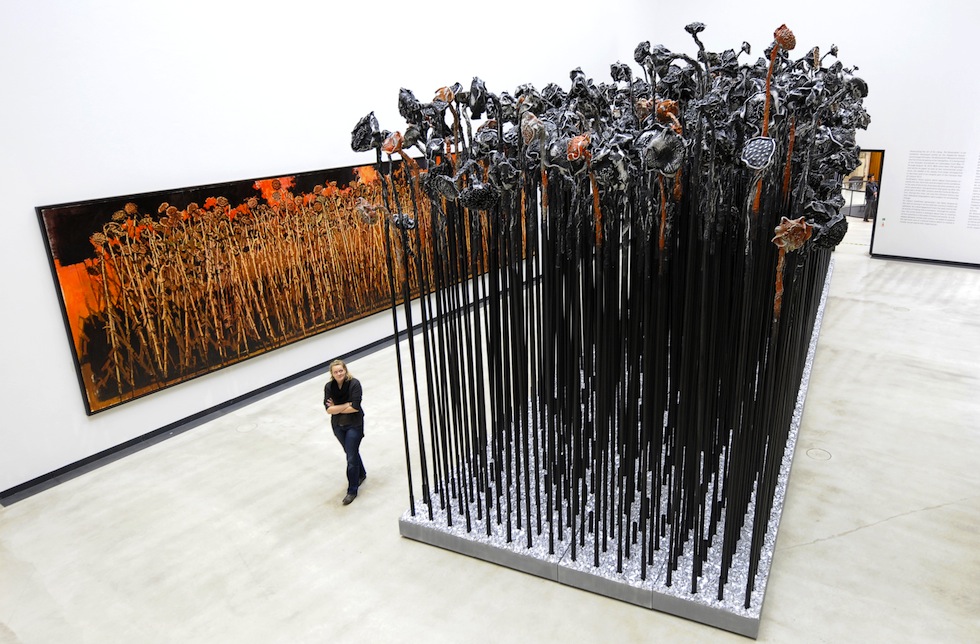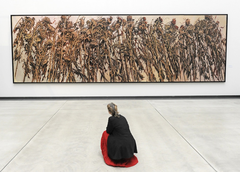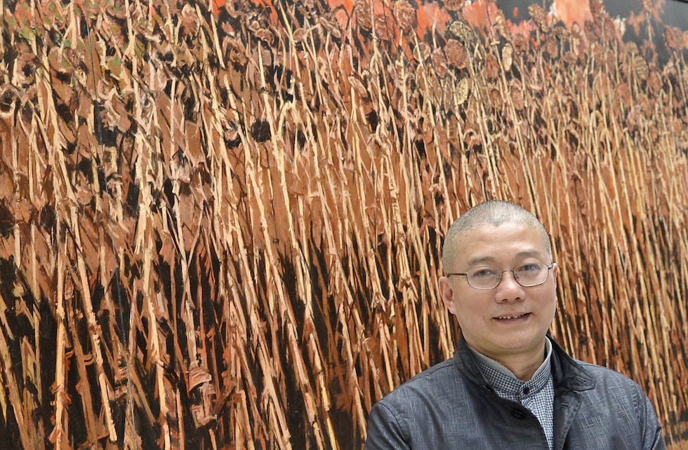 Xu Jiang è un artista cinese nato nella provincia di Fujian nel 1955, è il presidente dell’Accademia di Belle Arti di Hangzhou e ha fatto parte del comitato della Biennale di Shanghai. Dal 2003, al centro del suo lavoro, ci sono i girasoli: quelli che l’artista vede nella campagna della provincia di Fujian dove insegna in una scuola media. Xu Jiang ha spiegato che i girasoli non stanno «di fronte al sole» ma si rivolgono a «una direzione»: quella del sole che sorge.