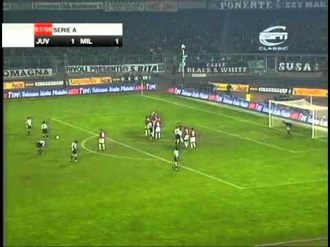 Qui Del Piero, in una delle partite più belle della storia della Juventus contro il Milan, segnò due reti. Una su rigore, l’altra, al 39esimo minuto, con un calcio di punizione alla “Del Piero”.