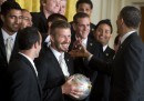 Il presidente degli Stati Uniti Barack Obama ha accolto ieri alla Casa Bianca i giocatori dei Los Angeles Galaxy, la squadra di calcio che ha vinto l’ultimo campionato statunitense.