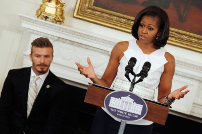 Obama ha tenuto un discorso poco istituzionale e molto amichevole congratulandosi con i giocatori per la terza coppa conquistata nella Major League Soccer: il presidente ha anche ricevuto una maglia personalizzata con il suo cognome e il numero uno stampato sul retro. Si è poi rivolto a David Beckham prendendolo in giro.