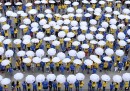 Nelle più belle foto di ieri ci sono uomini che nutrono pellicani, che tentano di battere un Guinness dei primati (danzando con degli ombrelli) e che si travestono da sirene