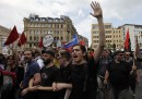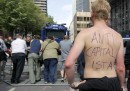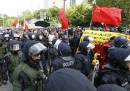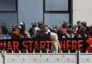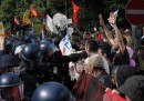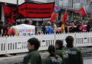 Nonostante il timore di scontri e le migliaia di agenti schierati nella città (oggi circa 5.000), il corteo si sta svolgendo per lo più in maniera pacifica. La polizia ha detto che ci sono stati alcuni scontri tra un piccolo gruppo di autonomi e gli agenti, e che sono stati accesi due fumogeni all’interno del corteo.
