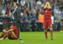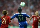 Il Bayern ha dominato la partita, tenendo molto la palla e schiacciando il Chelsea nella sua metà campo per gran parte del tempo regolamentare. Gli inglesi hanno messo in pratica la stessa tattica usata contro il Barcellona – difesa rocciosa e contropiede – rendendosi pericolosi in un paio di occasioni. Il Bayern Monaco è passato in vantaggio all’81esimo minuto con un gol di testa di Muller, e la partita sembrava finita lì. I tedeschi facevano uscire Muller per un centrocampista, il Chelsea faceva uscire un terzino per mettere dentro Torres. All’88esimo, però, sul primo calcio d’angolo ottenuto dagli inglesi in tutta la partita, un gran colpo di testa di Drogba permetteva al Chelsea di pareggiare.