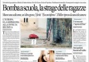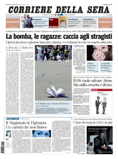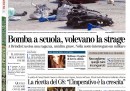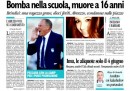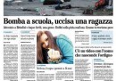 Tutte le prime pagine dei quotidiani di oggi sono dedicate naturalmente all’attentato di sabato mattina in una scuola di Brindisi, con accenti diversi di indignazione e rabbia.