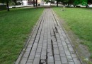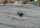 Un altro effetto del terremoto che le foto testimoniano è la salita in superficie di una poltiglia di acqua e sabbia, che, sembra a causa della pressione causata dal terremoto, è arrivata in molti punti fino alla superficie, allagando giardini privati, strade e campi.