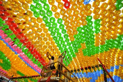 Nelle più belle foto di ieri ci sono lanterne colorate, Saturno, Teti e bambini contrariati mentre vengono sollevati verso la statua della Vergine