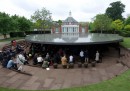 Oggi è stato inaugurato il padiglione estivo della Serpentine Gallery, galleria d’arte moderna e contemporanea ai Kensington Gardens, nel centro di Londra. Ogni anno dal 2000 la galleria commissiona a un architetto diverso il padiglione, per poi smontarlo e rivenderlo all’asta: quest’anno il progetto è stato realizzato dallo studio svizzero Herzog & De Meuron e da Ai Weiwei, artista e attivista cinese conosciuto per le vicende politiche che l’hanno portato a essere imprigionato nel 2011 dal governo. Herzog & De Meuron e Weiwei avevano già lavorato insieme disegnando il celebre stadio di Pechino, che assomiglia a un nido di uccello.