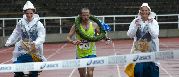 L’atleta giordano Methkal Abu Drais ha tagliato ieri il traguardo della maratona di Stoccolma, in Svezia: negli ultimi metri ha corso con al collo una corona d’alloro, con al fianco due ragazze in abiti tradizionali che esprimevano molto entusiasmo. L’effetto fotografico è piuttosto curioso. Dalla più lunga gara di corsa alla più breve: in un’altra foto, il velocista giamaicano Usain Bolt mentre corre i 100 metri piani a Roma. Anche lui ha vinto la gara, come ha vinto il lanciatore statunitense Reese Hoffa e il tennista francese Jo-Wilfried Tsonga. E poi Maradona in Qatar, le corse di cavalli e la nazionale australiana di pallanuoto in posa.