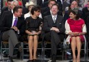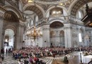 Oggi Elisabetta II non era accompagnata dal marito, il principe Filippo di Edimburgo, che ieri pomeriggio è stato ricoverato in ospedale per un’infezione alle vie urinarie (le sue condizioni sembrano comunque buone). Al suo posto, al fianco della regina, c’era la sua dama di compagnia. Elisabetta ha attraversato Londra sulla Bentley di Stato per arrivare alla cattedrale di St Paul dove ad attenderla c’erano il resto della famiglia reale e numerosi politici britannici, tra cui il primo ministro David Cameron, che durante la messa ha letto un passo del Nuovo Testamento.