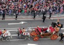 Nel pomeriggio, la regina ha sfilato in carrozza nel centro della città e successivamente si è affacciata dalla balconata di Buckingham Palace con la famiglia reale per salutare i suoi sudditi: tutti insieme poi hanno guardato il passaggio degli aerei dell’aeronautica britannica RAF (Royal Air Force), impegnati in una serie di evoluzioni su Buckingham Palace.