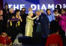 Ieri sera, davanti a Buckingham Palace a Londra, in Inghilterra, c’è stato un grande concerto in onore di Elisabetta II, che in questi giorni sta festeggiando i suoi 60 anni di reggenza nel cosiddetto Diamond Jubilee, il Giubileo di Diamante. Le celebrazioni del Diamond Jubilee si chiuderanno oggi e prevedono una serie di eventi, tra cui una sfilata di carrozze nel centro della città a cui parteciperà anche la Regina.
