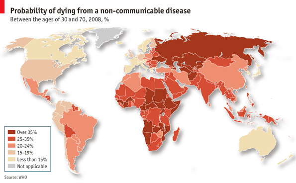 Soprattutto di malattie non trasmissibili, soprattutto in Asia e Africa, spiega una mappa dell'Economist