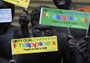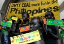 Un gruppo di attivisti di Greenpeace ha organizzato una protesta davanti all’Asian Development Bank di Pasig, a Manila, dove è in corso il Settimo incontro annuale sull’energia pulita, in cui esperti e investitori discutono su nuove soluzioni e strategie per sviluppare le energie rinnovabili in Asia e nei Paesi del Pacifico. Gli attivisti si sono dipinti di nero per impersonare i “demoni del carbone” e per chiedere alla banca, che offre consulenza tecnica e concede finanziamenti per promuovere lo sviluppo dei suoi 67 Paesi membri, di non finanziare più i progetti che prevedono l’uso del carbone, molto inquinante e dannoso per l’ambiente.
