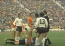 Negli anni Cinquanta e Sessanta la rivalità tra Germania e Olanda è stata piuttosto contenuta. Nel 1974 è cambiato tutto. Quell’anno Germania e Olanda giocarono la finale degli Mondiali di calcio, tra l’altro proprio in Germania. L’Olanda aveva una squadra straordinaria, una generazione d’oro guidata da Johan Cruijff e Johan Neeskens. Erano quelli del “calcio totale“, per intenderci, ossia quello stile di gioco per cui ogni calciatore è in grado di ricoprire più ruoli e ogni volta che qualcuno si sposta dalla propria posizione è subito sostituito da un compagno, permettendo così alla squadra di mantenere inalterata la propria disposizione tattica. L’Olanda perse la finale con i tedeschi per 2-1, nonostante essere passata in vantaggio proprio con Neeskens e aver giocato meglio.