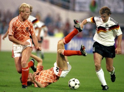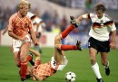 Otto anni dopo l’Olanda si prese l’agognata rivincita. Accadde agli Europei 1988, anche questi organizzati dalla Germania Ovest. Anche stavolta l’Olanda aveva una generazione di calciatori fenomenali, soprattutto Frank Rijkaard, Ruud Gullit e Marco Van Basten. Germania-Olanda non fu la finale ma una delle due semifinali del torneo, e stavolta a rimontare fu l’Olanda, che vinse 2-1 con un gol di Van Basten negli ultimi minuti (poi l’Olanda avrebbe vinto gli Europei, in casa dei tedeschi, battendo l’Unione Sovietica in finale). Dopo la partita l’olandese Ronald Koeman andò sotto il settore dei tifosi tedeschi con la maglia del loro connazionale Olaf Thon e fece finta di usarla come carta igienica.
