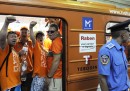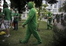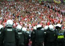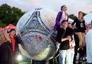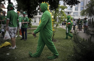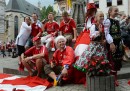 Uno dei momenti più caratteristici delle dirette televisive delle partite di calcio è quando la regia decide di inquadrare i tifosi sugli spalti. Invariabilmente, il tifoso se ne accorge, comincia ad esultare guardando in camera e la regia stacca. Al di là di questo gioco frequente e un po’ crudele, qui ci sono alcune immagini meno scontate e che valeva la pena fotografare, a qualche giorno dall’inizio degli Europei 2012 in Polonia e Ucraina: come tifosi in costume da drago, in riva ai fiumi, nelle tende o travestiti da regina Elisabetta.