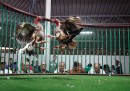 Uomini che guardano i galli combattere, uomini che salvano gli idrosauri e uomini che allevano i pitoni, nelle migliori foto di animali di questa settimana