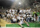La Montepaschi Siena di pallacanestro ha battuto ieri la EA7 Milano per 84-73 nella gara cinque dei playoff, vincendo così il suo sesto titolo consecutivo di campione d’Italia. È un record storico: prima di ieri il numero massimo di campionati vinti consecutivamente era cinque, ottenuto da Siena e dalla Borletti, la vecchia Olimpia Milano.