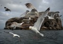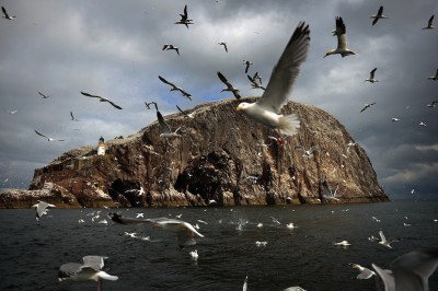 Bass Rock è un’isola che si trova di fronte a Firth of Forth, l’insenatura creata dalla foce del fiume Forth nel Mare del nord, in Scozia. L’isola ospita una delle colonie di sule più numerosa al mondo, circa 150 mila esemplari, tanto che il nome scientifico degli uccelli marini – sula bassana o morus bassanus – deriva dal nome dell’isola. Le sule, che hanno le dimensioni delle oche, vivono nell’isola da gennaio a ottobre – dove nidificano sempre con lo stesso compagno usando lo stesso nido. In autunno svernano e si dirigono verso le coste occidentali dell’Africa. In passato le sule venivano allevate nell’isola per nutrirsi delle uova e della carne dei pulcini.