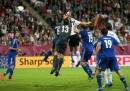 La Germania ha battuto a Danzica la Grecia per 4 a 2 ed è la seconda semifinalista degli Europei di calcio, dopo il Portogallo: giocherà contro la vincente tra Italia e Inghilterra, che si incontrano domenica. La Germania ha dominato buona parte del primo tempo riuscendo a segnare un solo gol e colpendo due pali; nel secondo la Grecia ha pareggiato in uno di diversi contropiedi, ma rapidamente i tedeschi hanno segnato tre volte, a cominciare da un pazzesco gol al volo di Khedira. La Grecia ha segnato ancora su rigore quando ormai mancava un minuto e mezzo al fine del tempo regolamentare. Di fatto, malgrado il risultato, c’è stata partita solo per una decina di minuti. Sabato giocano Francia e Spagna.