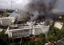 Questa mattina in India i vigili del fuoco sono riusciti a spegnere un incendio scoppiato giovedì nella sede del governo del Maharashtra, a Mumbai. Il fuoco si è diffuso dal quarto all’ottavo e ultimo piano dell’edificio, ha ucciso cinque persone, ne ha ferite gravemente quindici e ha distrutto centinaia di documenti. Circa tremila persone si trovavano all’interno dell’edificio al momento dell’incendio: molte sono riuscite a uscire in strada, altre sono rimaste intrappolate all’interno per ore durante le operazioni di soccorso e hanno cercato di ripararsi dal fumo uscendo sul tetto e sui cornicioni.