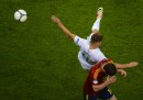 La Spagna ha battuto il Portogallo ai rigori per 4-2 nella semifinale degli Europei, qualificandosi in finale. La Spagna ha sbagliato il primo rigore con Xabi Alonso, mentre Sergio Ramos ha fatto una specie di “cucchiaio”. Il Portogallo ha sbagliato con Moutinho e Bruno Alves. Cristiano Ronaldo non ha tirato: avrebbe dovuto calciare il quinto rigore, la Spagna ha vinto prima.