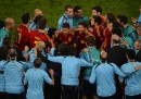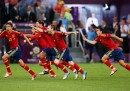 Il tempo regolamentare e i tempi supplementari erano finiti zero a zero ed erano stati molto noiosi e giocati male da entrambe le squadre: il Portogallo non ha mai tirato in porta, la Spagna ha tirato due volte e ha sprecato alcune buone occasioni. La Spagna incontrerà domenica sera a Kiev, in Ucraina, la vincente della semifinale di domani tra Italia e Germania.