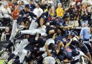 Lunedì si sono concluse a Omaha, Nebraska, le finali del campionato americano di baseball dei college, che si chiamano College World Series (CWS), in imitazione delle più importanti finali del campionato maggiore (le World Series). L’assegnazione del titolo di campione avviene in modi diversi dalle World Series: intanto la fase finale si svolge sempre a Omaha, a giugno. E poi vi partecipano otto squadre divise in due gironi da cui vengono eliminate man mano che perdono due partite: le ultime due rimaste, una per girone, giocano le vere finali, al massimo delle tre partite.